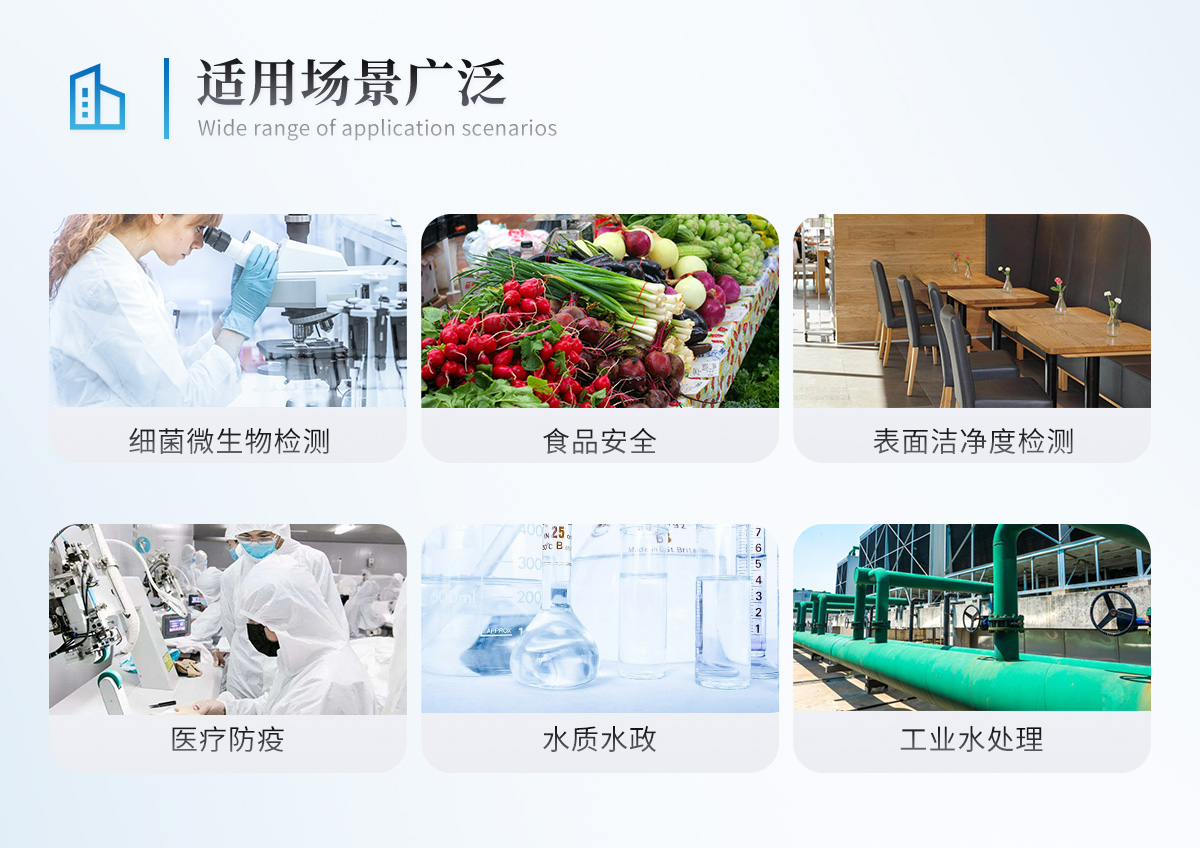 云唐ATP熒光檢測儀廣泛應用于:細菌微生物檢測、醫藥衛生、食品安全、市場執法、表面潔凈度檢測、醫療防疫、水質水政、生產線衛生、工業水處理、環保檢測、海關出入境檢疫及其他執法部門等多種行業。