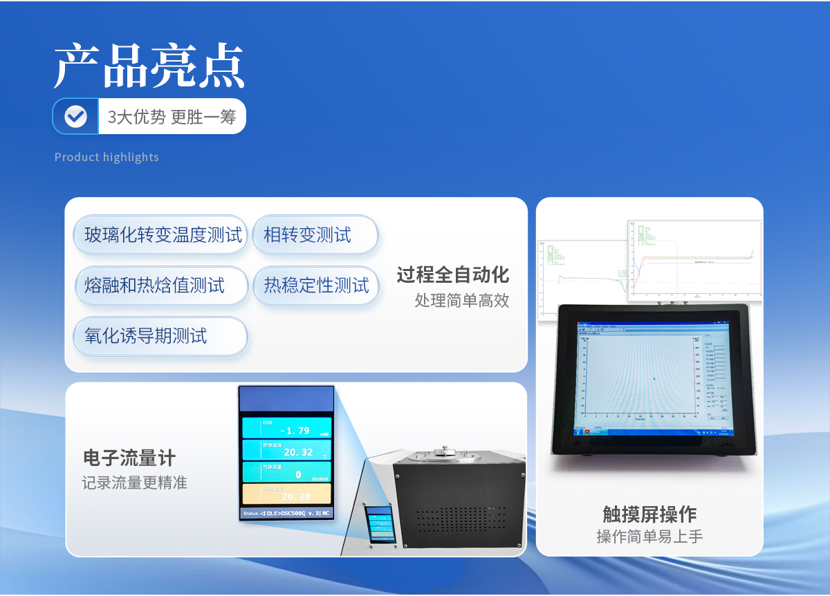 產品介紹: 差示掃描量熱儀為觸摸屏式,可進行玻璃化轉變溫度測試、相轉變測試、熔融和熱焓 值測試、產品穩定性、氧化誘導期測試。 符合標準: GB/T 19466.2–2004/ISO 11357-2:1999第2部分:玻···
