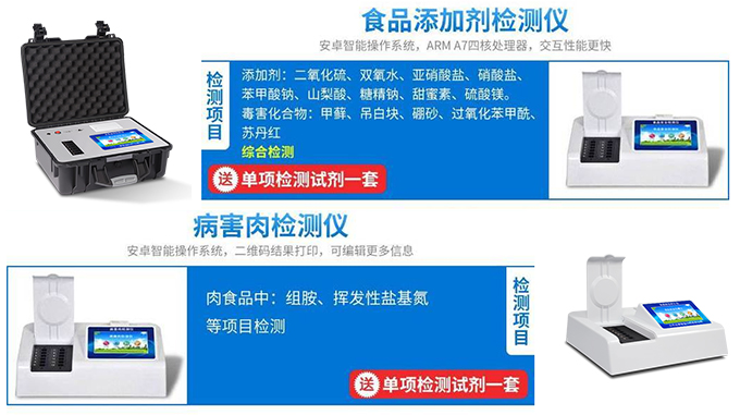 可快速檢測各類食品中的甲醛、二氧化硫、亞硝酸鹽、吊白塊的含量,儀器預留其他項目檢測程序和端口,根據日后需求可方便的自主增加檢測項目。