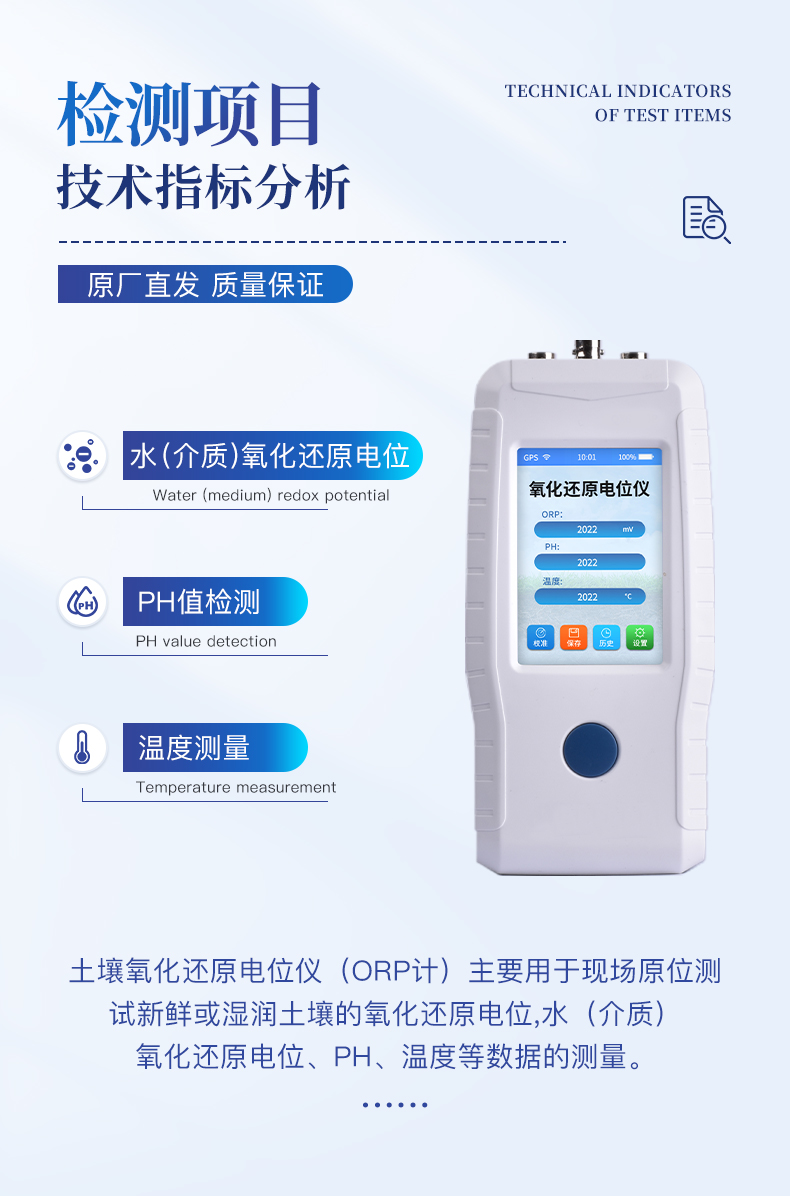 儀器特點: YT-YH土壤氧化還原電位儀(ORP計)主要用于現(xiàn)場原位測試新鮮或濕潤土壤的氧化還原電位,水(介質(zhì))氧化還原電位、PH、溫度等數(shù)據(jù)的測量。符合《HJ746-2015土壤氧化還原電位的測定電位···