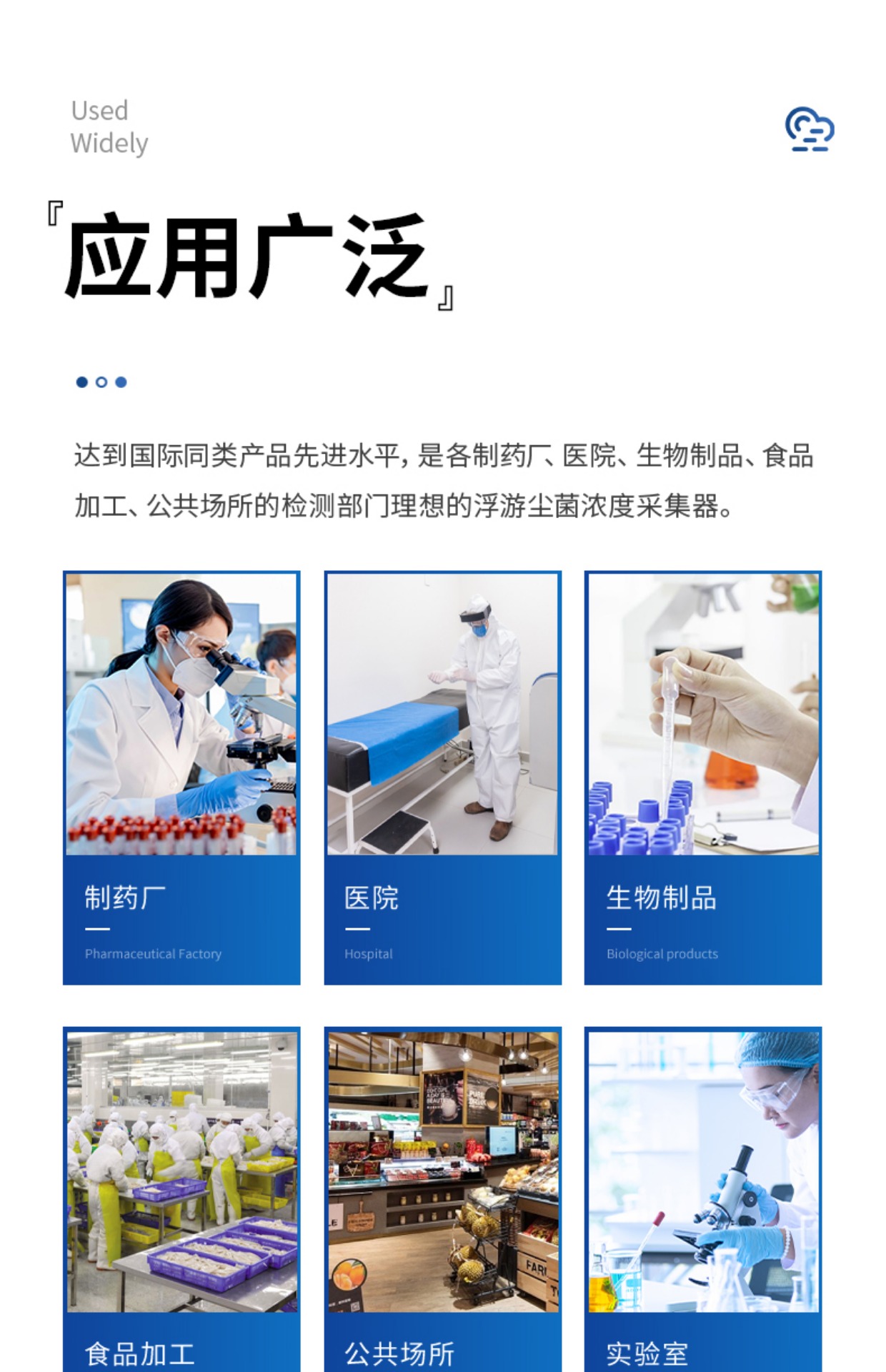 本儀器結構獨特新穎,分上下兩部分,上部分采集口和采樣座及氣泵,下部分控制器及電池。采樣口和外殼采用優質航空鋁制造,表面閉孔處理,便于使用前的滅菌消毒。本儀器功能強大,采樣量大,收集效率高,性能穩定,操作簡便,達到國際同類產品**水平,是各制藥廠、醫院、生物制品、食品加工、公共場所的檢測部門理想的浮游塵菌濃度采集器。