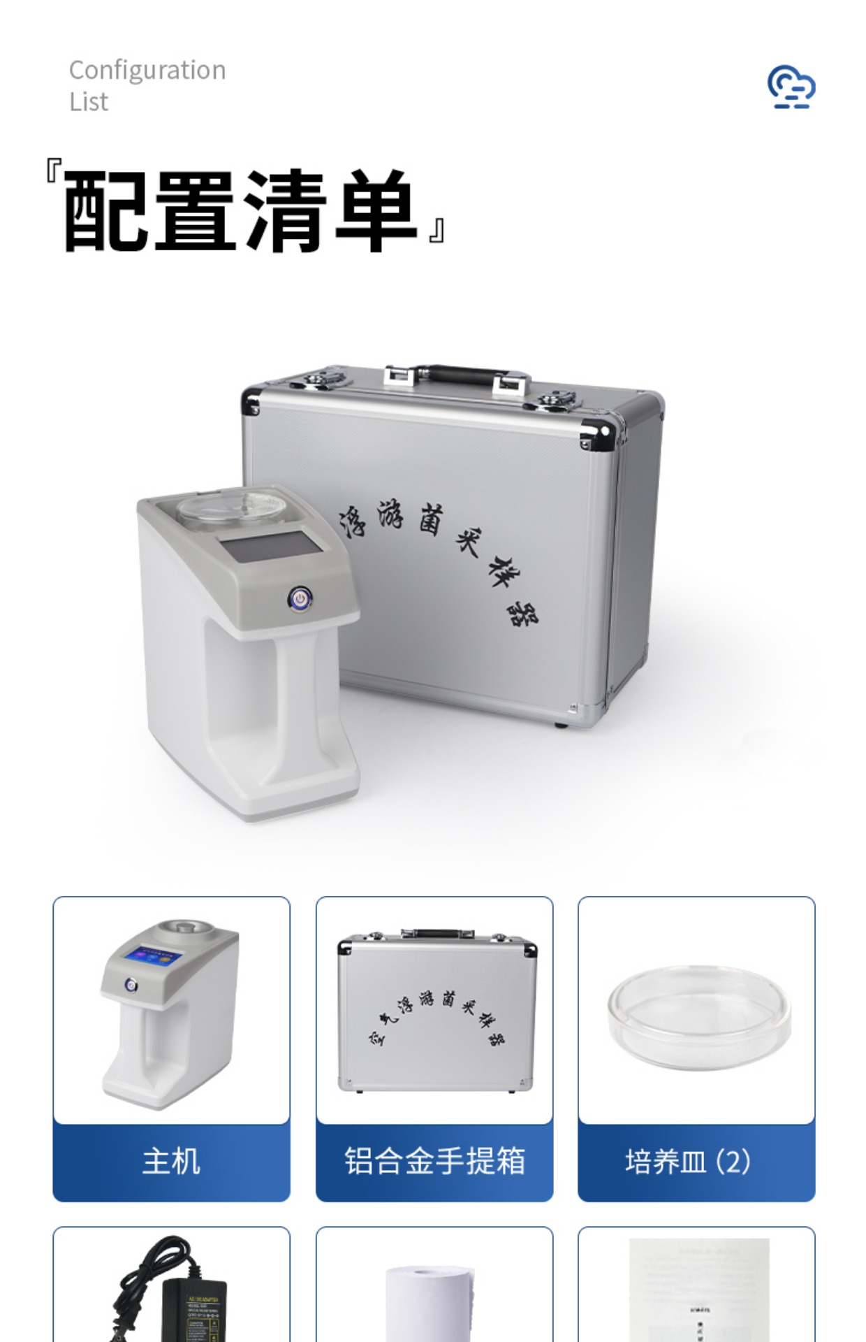 標準配件:采樣蓋1個,培養皿2個,防塵罩1個,熱敏打印紙1卷,電源適配器,說明書,合格證