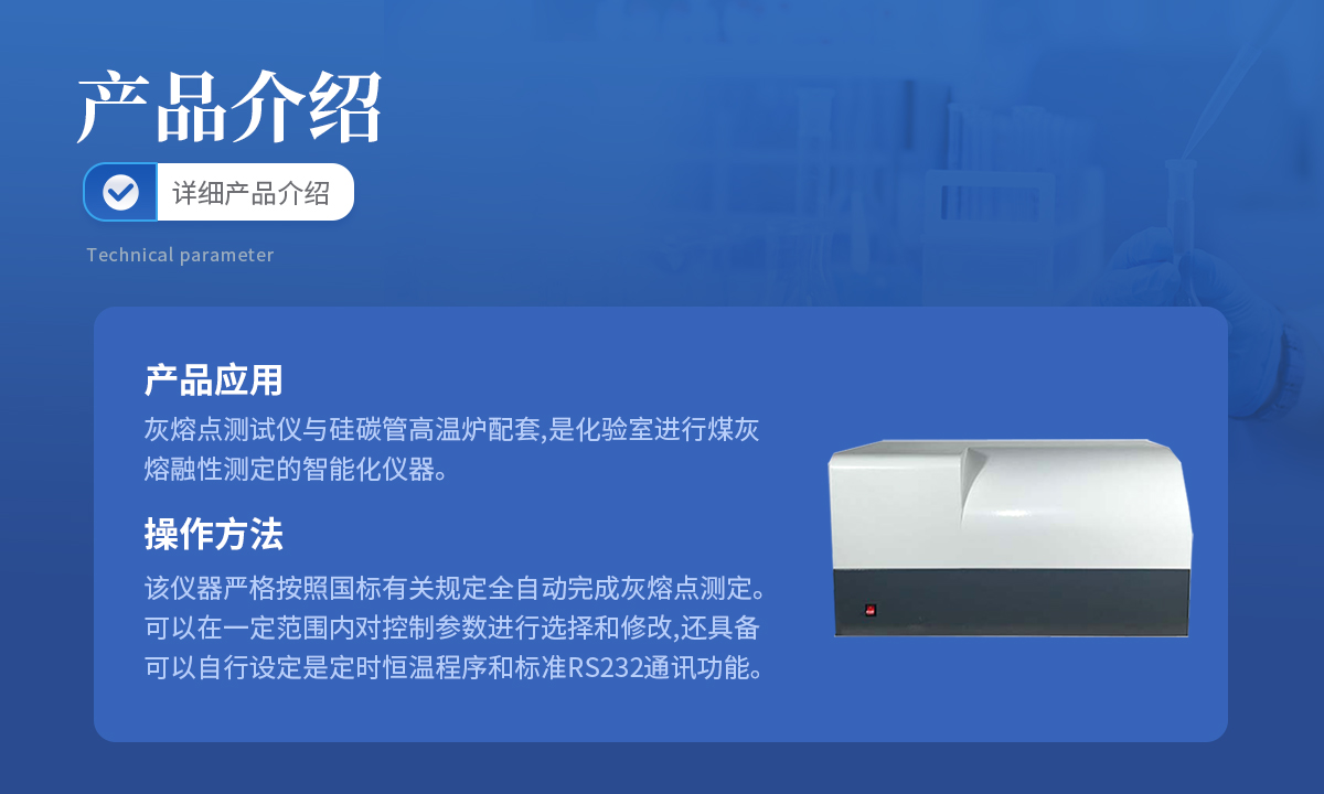 灰熔點測試儀與硅碳管高溫爐配套,是化驗室進行煤灰熔融性測定的智能化儀器.該儀器嚴格按照國標(biāo)有關(guān)規(guī)定全自動完成灰熔點測定.可以在一定范圍內(nèi)對控制參數(shù)進行選擇和修改,還具備可以自行設(shè)定是定時恒溫程序和標(biāo)準(zhǔn)RS232通訊功能.