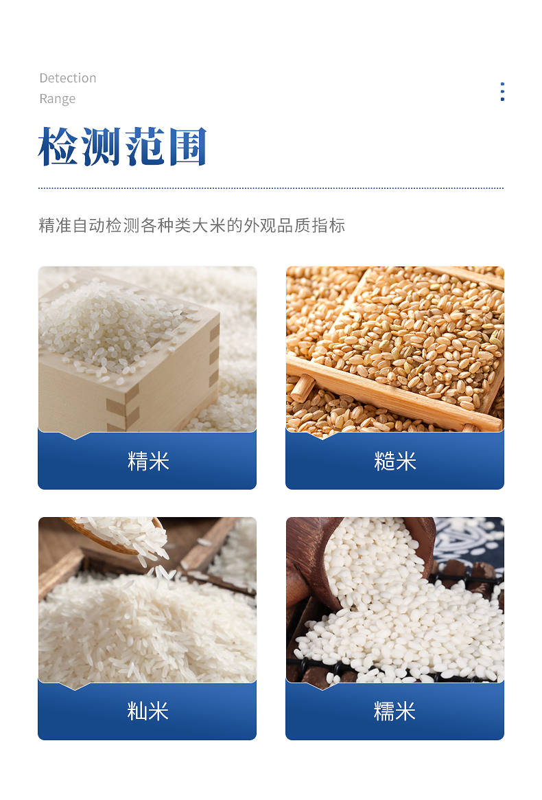 產品介紹:大米外觀品質檢測儀可自動測量每粒的面積、長徑、短徑、長寬比、圓度、等效直徑。可用于各種類大米(精米、糙米、糯米等)各項外觀品質指標的精準自動檢測,可進行多參數、批量化的自···