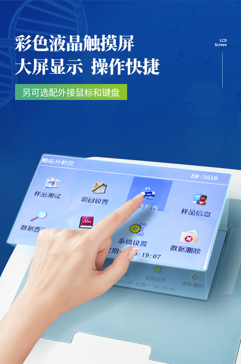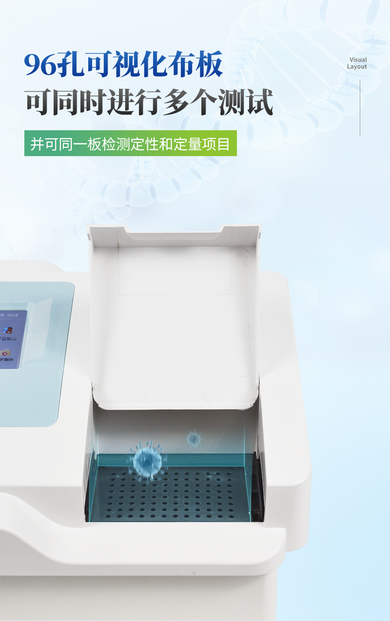 產品特點: 10.4英寸彩色液晶觸摸屏輸入,大屏顯示,操作快捷; 全屏顯示96孔可視化布板操作界面; 自動儲存標準曲線,用戶可對標準曲線進行修正;