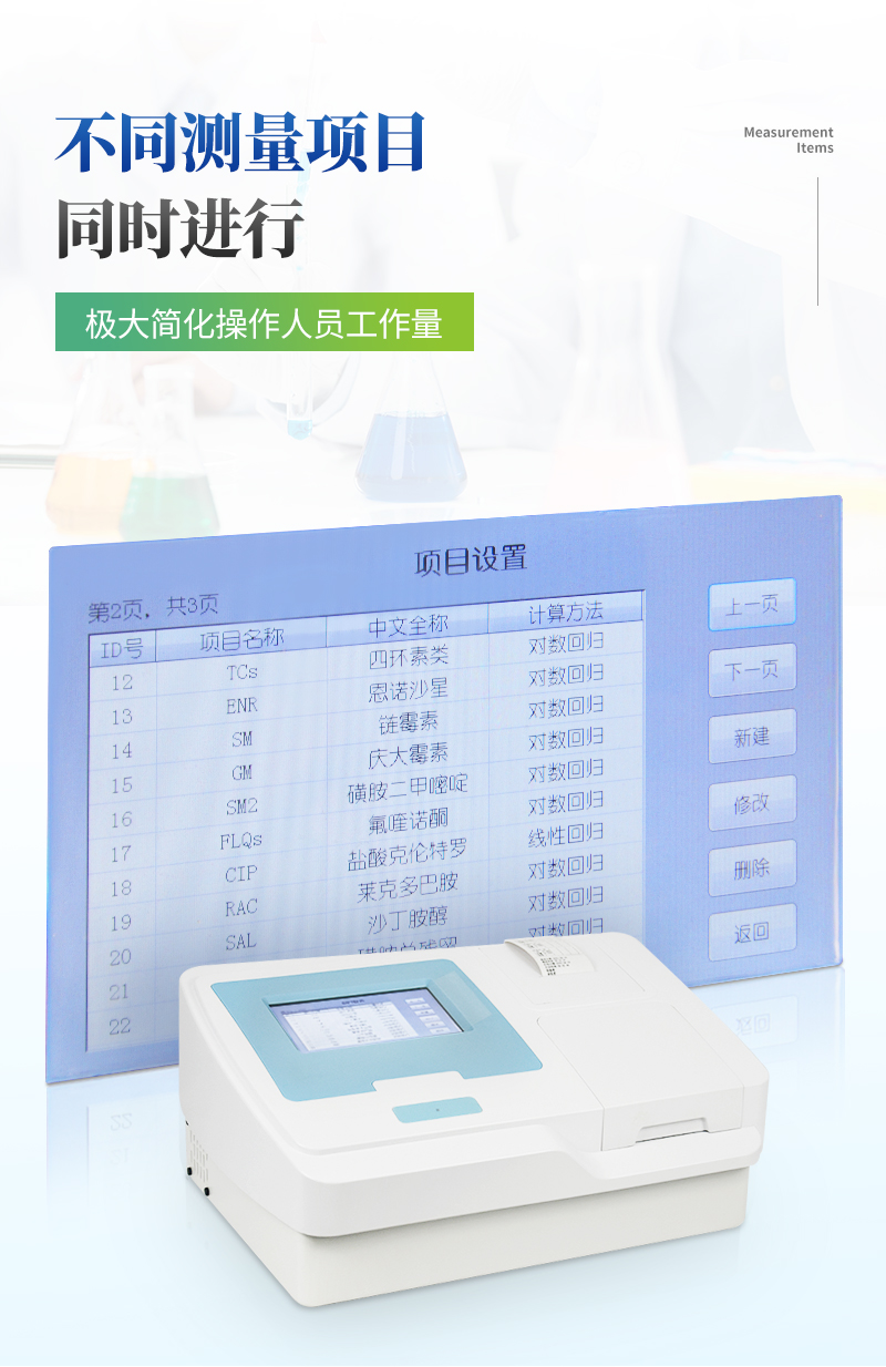 | 10.4英寸彩色液晶觸摸屏輸入,大屏顯示,操作快捷; | 全屏顯示96孔可視化布板操作界面; | 自動儲存標準曲線,用戶可對標準曲線進行修正; | 內置嵌入式系統,無需外接電腦即可操作、存儲、打印; | 單波長和雙波長測試模式下均可進行自動調零; | 可選配外接PC軟件,網絡化支持,迎合數字化發展方向,可定制上傳; | 海量存在,至少可儲存100萬板(96)測試數據及500個編程項目,并支持數據備份恢復合并; | 在同一板上可進行24個不同項目并可用顯示區分的測試,并可同一板檢測定性和定量項目; | 模板功能,固定檢測工作,極大簡化操作人員工作量; | 智能計算測試結果,確保測試結果的準確有效,并可自動報警; | 全新Windows彩色圖形化界面,全中文操作系統,支持鼠標、鍵盤,支持多種輸入法; | 光源智能開關,延長其壽命; | 全面完善的質控功能,包含westguard多規則質控,即刻法質控等多種質控圖及質控參數計算,具有質控報警功能; | 提供多種打印方式及多種形式中文報告,并可定制各式報告; | 布板和保存導入功能,大幅提高常用項目的測試效率; | 可選擇吸光度、Cut-Off定性計算、單點定標、折線回歸、線性回歸、指數回歸、對數回歸、雙對數回歸、log-logit、冪回歸、四參數回歸、酶抑制率等計算方法; | 專用系統維護菜單,自動判斷儀器當前狀態及性能指標,并可打印相關數據; |