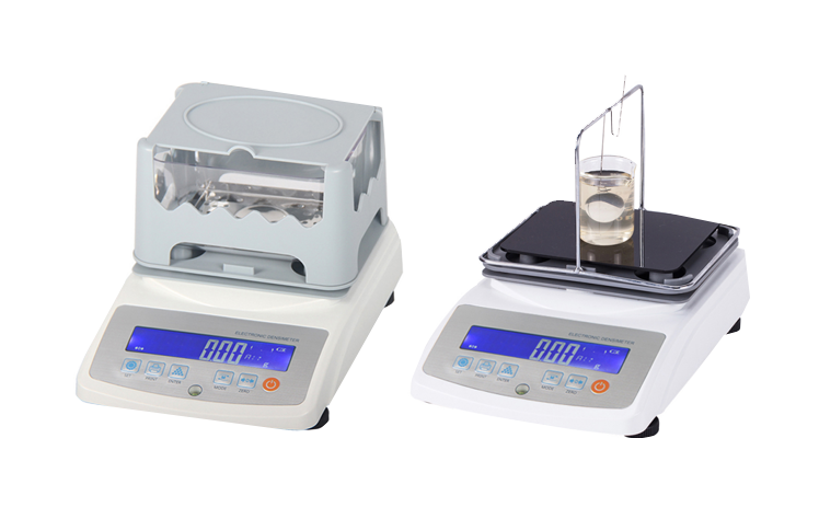 | 依據(jù):ASTM D792、 ASTM D297、 GB/T1033、GB/T2951、 GB/T3850、 GB/T533、 HG4-1468、 JIS K6268、 ISO 2781、ISO 1183、ISO2781、ASTMD297-93、DIN 53479、D618,D891、ASTM D792-00、JISK6530, ASTM D792-00、JISK6530…等標(biāo)準(zhǔn)規(guī)范。 測試種類 橡膠/塑料/顆粒浮體/陶瓷/PVC 管材板材/塑膠產(chǎn)品金屬/磁性材料/巖石/海綿 PE顆粒/電線電纜等 測試時間 約5秒 顯示值 密度、體積 溫度補(bǔ)償 溶液溫度可設(shè)定至0~100℃ 溶液補(bǔ)償 溶液可設(shè)定至19.999 | 液體運用范圍:化工溶液、化工助劑、現(xiàn)代能源、石油燃燒、藥劑、油漆涂料、瀝青、食用油等各種液體、研究實驗室。 原理:依據(jù):ASTM D792、 ASTM D297、 GB/T1033、GB/T2951、 GB/T3850、 GB/T533、 HG4-1468、 JIS K6268、 ISO 2781、ISO 1183、ISO2781、ASTMD297-93、DIN 53479、D618,D891、ASTM D792-00、JISK6530, ASTM D792-00、JISK6530…等標(biāo)準(zhǔn)規(guī)范。 測試種類 化工溶液、化工助劑、現(xiàn)代能源、石油燃燒、藥劑、油漆涂料、瀝青、食用油等各種液體 測試時間 約5秒 顯示值 密度、體積、濃度 溫度補(bǔ)償 溶液溫度可設(shè)定至0~100℃ 溶液補(bǔ)償 溶液可設(shè)定至19.999 | 技術(shù)參數(shù):型號 稱重范圍 稱重精度 密度精度 YT-GY01 0.01-300g 0.01g 0.001g/cm3 YT-GY02 0.01-600g 0.01g 0.001g/cm3 YT-GY03 0.005-300g 0.005g 0.0001g/cm3 YT-GY04 0.001-120g 0.001g 0.0001g/cm3 | 特點:1.直讀任何形狀密度>1或是<1的固體塊狀、顆粒、浮體的密度和體積. | ◆ 具有溫度補(bǔ)償設(shè)定、溶液補(bǔ)償設(shè)定功能,更人性化的操作、更符合現(xiàn)場作業(yè)需求 | ◆ 密度測量臺一體注塑成型,安裝方便快速,使用時間更長. | ◆ 采用一體成型耐腐蝕大水槽設(shè)計,降低吊欄線的浮力所造成的誤差,也方便測試比較大的塊狀物體(水槽尺寸:150*100*85mm) | ◆ 具有密度上、下限功能,可判定待測物的比重合格與否。設(shè)有蜂鳴器裝置 | ◆ 內(nèi)置蓄電池,配置防風(fēng)罩,更適合現(xiàn)場測試. | ◆ 支持RS232,直接連接電腦或打印機(jī) | ◆ 選裝全自動溫度計,自動水溫補(bǔ)償功能 | ◆ 藍(lán)底白光大LCD液晶顯示,顯示更清晰 | ◆ 密度測量臺 | ◆ 水槽 | ◆ 校正砝碼 | ◆ 抗浮架 | ◆ 鑷子 | ◆ 說明書 | ◆ 保修卡 | ◆ 網(wǎng)球 | ◆ 玻璃杯 | ◆ 電源 | ◆ 不銹鋼T型架 | ◆ 石英砝碼 | ◆ 量杯 | ◆ 專用掛鉤 | ◆ 打印機(jī) | ◆ 打印線 | 測量步驟:A.測試密度大于一的塊狀步驟 1.放產(chǎn)品于測量臺上秤重量穩(wěn)定按Enter鍵記憶。 | ◆ 放樣品于水中秤重量穩(wěn)定按Enter鍵記憶,立即出密度值 | ◆ 按Mode鍵切換顯示體積 | ◆ B.測試密度小于一的塊狀步驟: | ◆ 把抗浮架放在水中的吊籃,按Zero鍵歸零。 | ◆ 放產(chǎn)品于測量臺上秤重量穩(wěn)定后按Enter鍵記憶 | ◆ 放產(chǎn)品于抗浮架下面,穩(wěn)定后按Enter鍵記憶, 立即讀出密度值.按Mode鍵卻換體積. | ◆ C.測試顆粒的步驟: | ◆ 放一個量杯(A)于測量臺上、另外茶球(B)在水中的吊欄上,按Zero扣除2個之重量。 | ◆ 確認(rèn)顯示屏為 0.00g 。放顆粒于量杯(A),待數(shù)據(jù)穩(wěn)定后按Enter記憶空氣中之重量。 | ◆ 拿出茶球(B),小心的將顆粒從量杯(A)倒至茶球(B)。 | ◆ 小心的放回茶球 (B)于水中的吊欄上,再將量杯(A)放回測量臺上。 | ◆ 此時,顯示屏的值為顆粒在水中之重量,待數(shù)據(jù)穩(wěn)定后按Enter記憶水中之重量。此時顯示值即為顆粒的密度比重值,按Mode鍵可以切換成顆粒的體積。 | ◆ 按Set鍵退出當(dāng)前操作。 | ◆ D、測試液體的步驟: | ◆ 進(jìn)入液體密度測試模式后,狀態(tài)顯示區(qū)顯示“AIR”。 將掛鉤懸掛在液體專用架正中央,按下“Zero”鍵,扣除掛鉤重量。 | ◆ 使用掛鉤將標(biāo)準(zhǔn)的玻璃砝碼鉤起,穩(wěn)定后,按“Enyer”鍵。確認(rèn)玻璃砝碼在空氣中的重量時,顯示“SAV-A”,表示已記錄空氣中的重量值。 | ◆ 此時狀態(tài)顯示區(qū)顯示“LIq”。取下玻璃砝碼。并取50ml待測液體樣品到燒杯中,將玻璃砝碼放入液體中。 | ◆ 將燒杯放在支撐板的正中央,使用掛鉤將玻璃砝碼鉤起(確定測量液體有高于玻璃砝碼,而且玻璃砝碼不可以碰到燒杯壁),穩(wěn)定后,按“Enter”鍵。確認(rèn)玻璃砝碼在液體中的重量時,顯示“SAV-B”,表示已記錄液體中的重量值。 | ◆ 自動顯示被測液體的密度值。按“Mode”鍵,可切換顯示樣品的濃度值。 | ◆ 按“Print”鍵,可通過RS232通信輸入測試結(jié)果等數(shù)據(jù)或通過專用微型打印機(jī)打印出測試時間、統(tǒng)計各項測試數(shù)據(jù)等。 | ◆ 按“Set”鍵返回到待測狀態(tài),可進(jìn)行下一組樣品的測量。(連續(xù)測試時,要將掛鉤及玻璃砝碼清潔干凈) | 儀器尺寸:185*270*190mm | 包裝尺寸:430*200*360mm | 包裝重量:4kg |