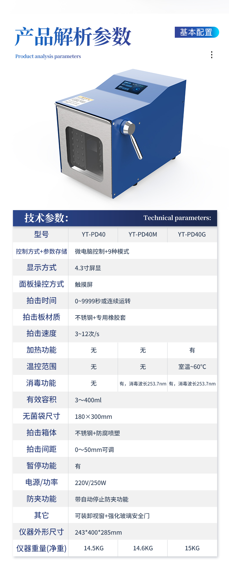 產(chǎn)品概述: 拍打式均質(zhì)器(Stomacher Blender)是一種常用于實驗室樣品前處理的設(shè)備,主要用于生物、食品、藥品等樣品的均質(zhì)化和微生物檢測前的制備。 應用范圍: 食品檢測:肉類、乳制品、果蔬···