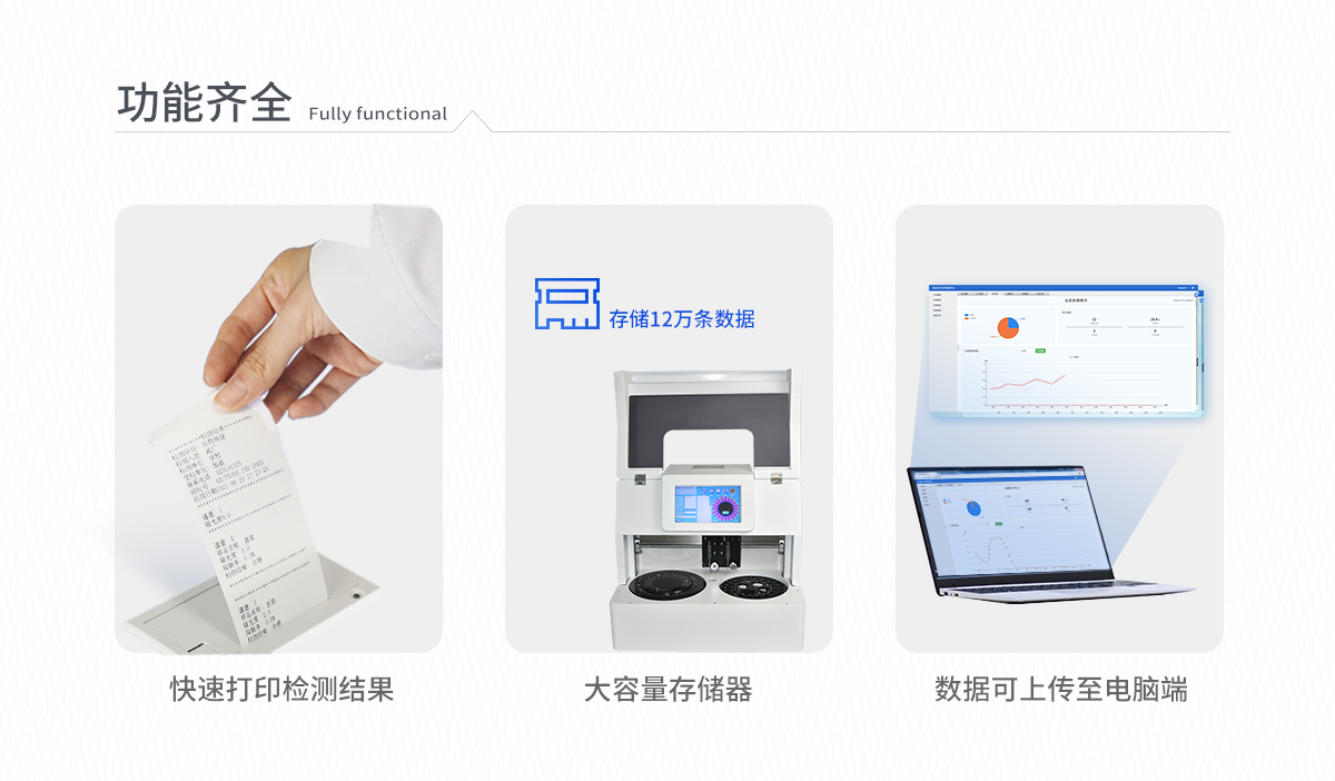 | 人性化界面,操作方便 | 儀器按照試劑要求自動、按時、按量加入試劑,提高工作效率 | 儀器自動對未正常放置的樣本或異常的樣本進行檢查并提示 | 采用**的冷光源,保證了光源的穩定性及數據的準確性 | 大容量存儲器,能存儲12萬條數據,滿足客戶需求 | 內置微型熱敏打印機,快速打印檢測結果,方便數據留存 | 可通過數據線連接電腦,將檢測的數據上傳至電腦端 | 儀器可自動清洗管路,避免試劑污染 | 儀器檢測消耗試劑量和常規儀器一致 | 儀器具有自動加溫溫控系統 |