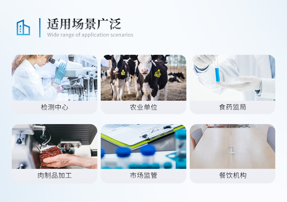 | 便于攜帶,單手可持 | 可根據測定對象的品種,設定相應的判斷標準值 | 操作簡便,檢測人員無需專業技能知識 | 檢測時間短,每個樣品2分鐘內出結果; | 檢測試驗無需其他耗材及試劑 |