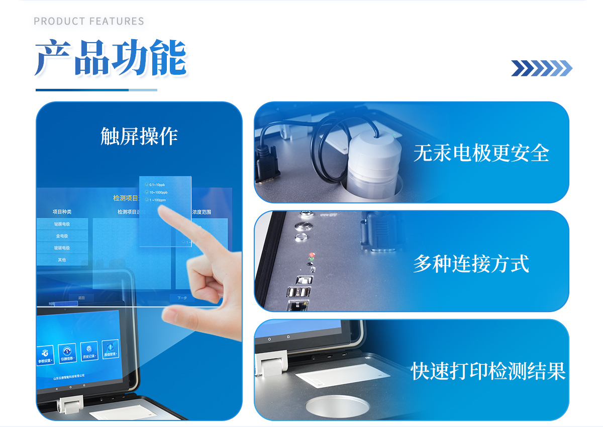 可快速檢測重金屬鉛、鎘、銅、鋅、汞、砷等。