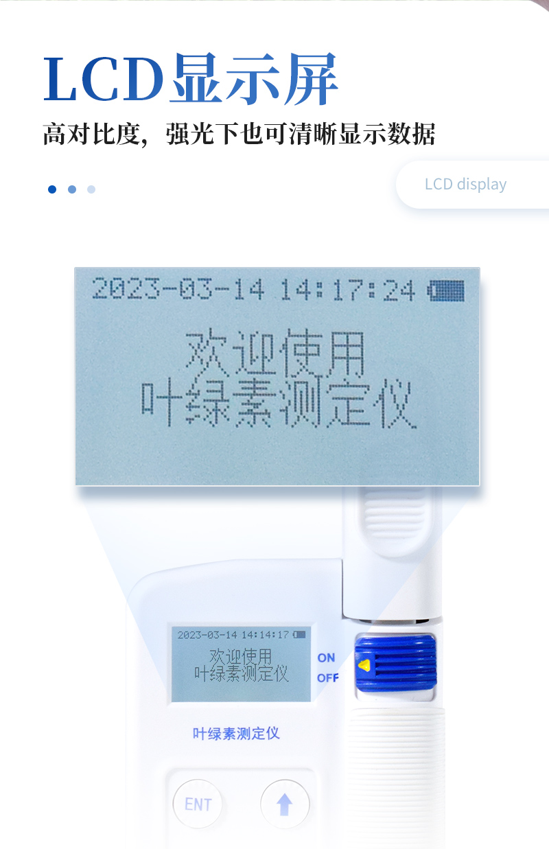 | 葉綠素測(cè)定儀的工作原理 兩個(gè)LED光源發(fā)射兩種光,一種是紅光(650nm),一種是紅外光(940nm),兩種光穿透葉片,打到接收器上,光信號(hào)轉(zhuǎn)換成模擬信號(hào),模擬信號(hào)被放大器放大,由模擬/數(shù)字轉(zhuǎn)換器轉(zhuǎn)換成數(shù)字信號(hào),數(shù)字信號(hào)被微處理器處理,計(jì)算出SPAD值并顯示在液晶屏上。 | 葉綠素測(cè)定儀測(cè)量值的校準(zhǔn)與計(jì)算 (1)葉綠素儀測(cè)量值的校準(zhǔn)與計(jì)算 兩個(gè)LED次序發(fā)光,被接收的光轉(zhuǎn)換成電信號(hào),光強(qiáng)度的比率被用來(lái)計(jì)算。 (2)在壓頭夾住樣品后,兩個(gè)LED再次發(fā)光,通過(guò)葉片傳輸?shù)墓獯虻浇邮掌魃希晦D(zhuǎn)換成電信號(hào),傳輸光的強(qiáng)度比率被計(jì)算。 (3)步驟1和2的值用于計(jì)算SPAD測(cè)量值,即表示夾住的樣品葉片當(dāng)前葉綠素相對(duì)含量。 |