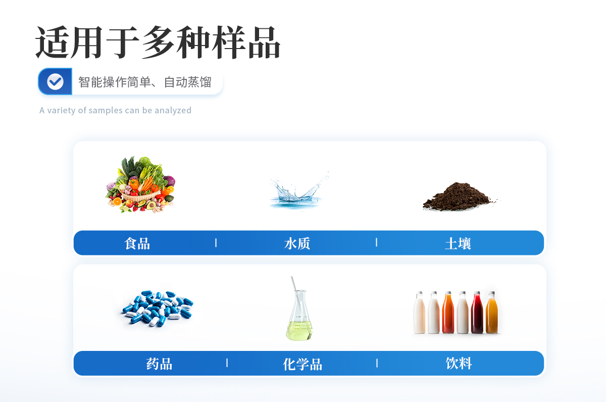 智能一體化蒸餾儀采用智能模塊化設計:方法自定義設置保存/讀取、開機自動調取使用,冷凝單元特殊定制蛇形冷凝管、智能終點控制防過量蒸餾、防倒吸保護,防干燒保護、實現了智能操作簡單、自動蒸餾、美觀實用、節能降耗、節省人工的同時為用戶做樣提**率節約人員成本開銷。
