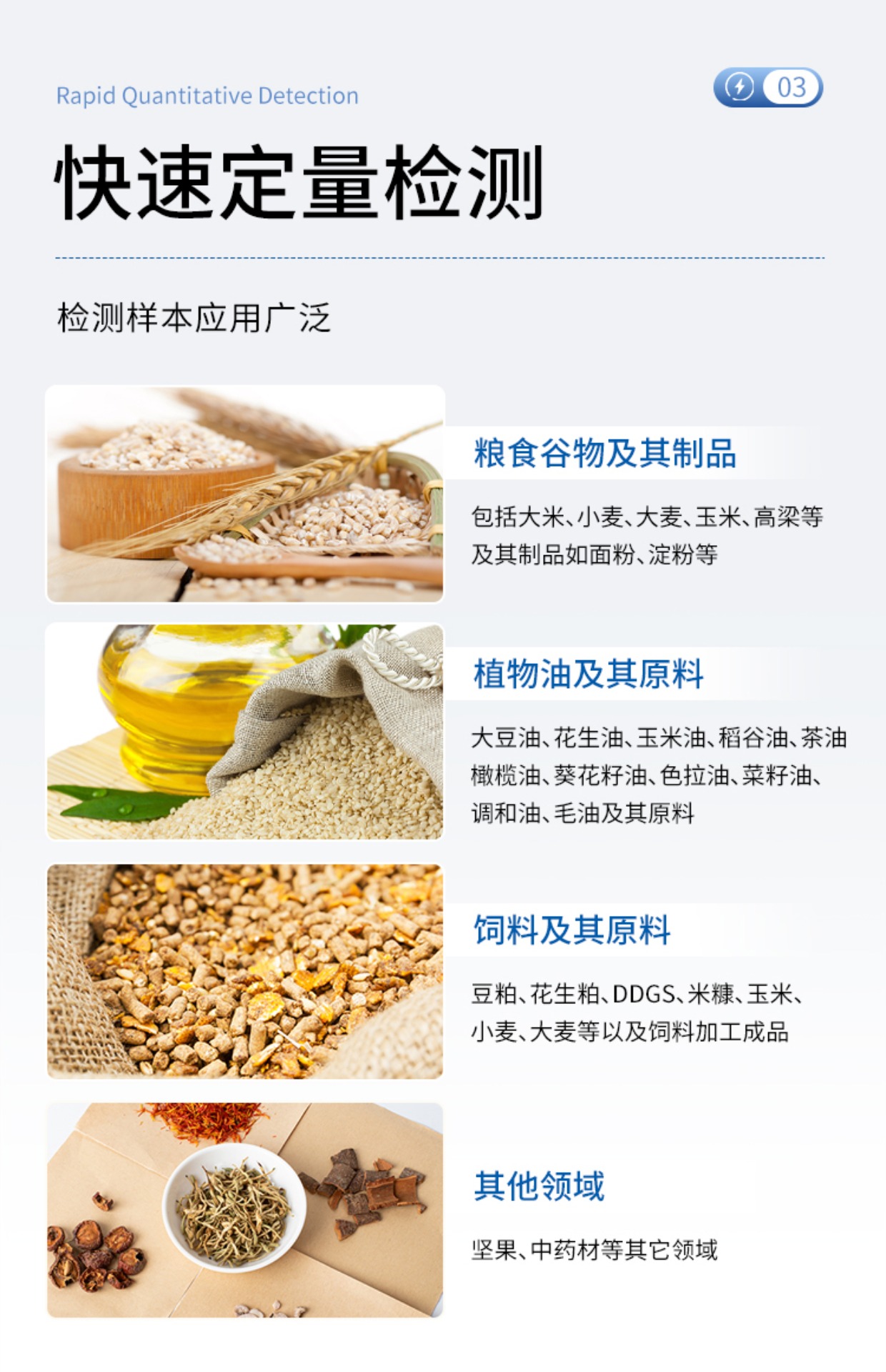 | 伏馬毒素 | 100-6000ug/kg | 玉米、小麥、麥麩、豆粕、花生粕、玉米胚芽粕、膨化玉米、DDGS、噴漿玉米皮、濃縮料及犢牛顆粒料及成品飼料 |